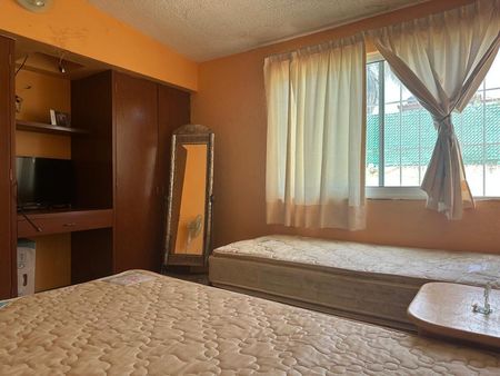 Casa construida en un solo nivel, cuenta con dos recamaras, dos baños completos, estudio, sala y comedor, cocina integral, patio, jardín y alberca, dos lugares de estacionamiento
